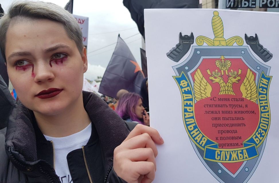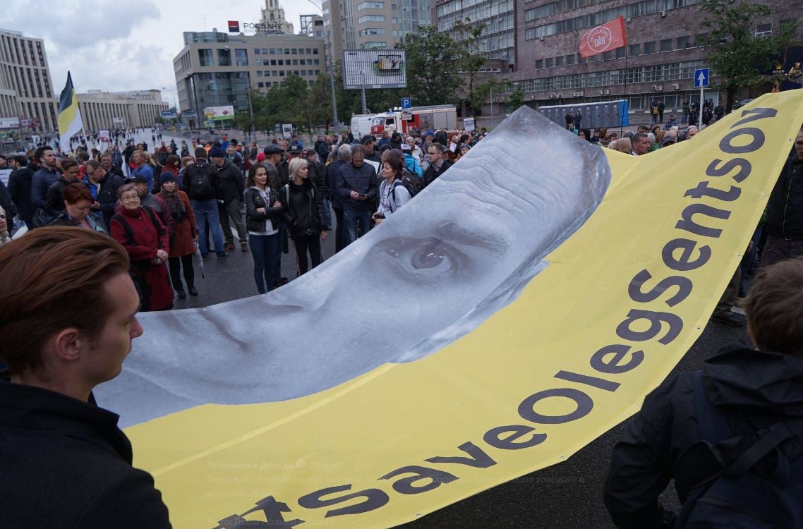 Учасники нової акції протесту розтягнули в центрі російської столиці і банер з написом #SaveOlegSentcov (врятувати Олега Сенцова). На мітингу виступив також режисер Аскольд Куров, який розповів учасникам мітингу про свій нещодавній візит до Лабитнангі. Куров розповів деталі справи Сенцова, а також ще раз оприлюднив вимогу Олега, який почав 28 днів тому голодування, - звільнення всіх українських політв'язнів.