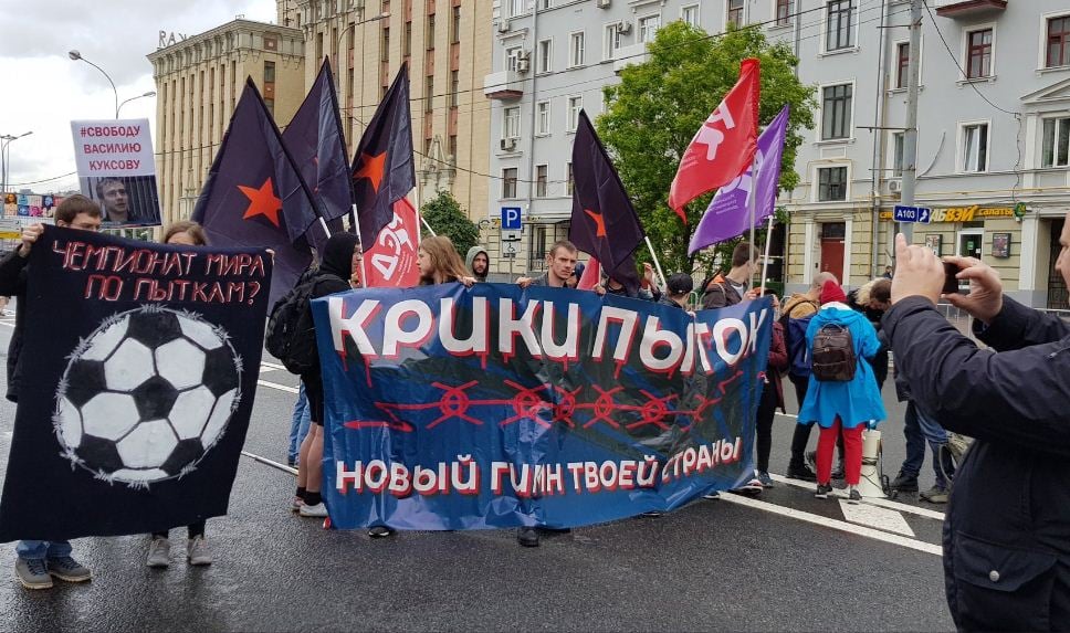 В акції беруть участь правозахисники, противники створення фан-зони Чемпіонату світу з футболу в Москві, активісти, що закликають звільнити політв'язнів, борці за свободу в інтернеті.