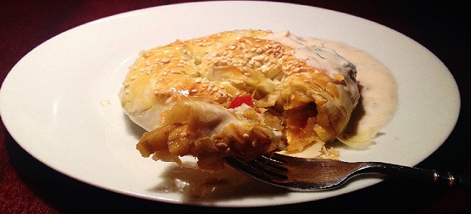 Баклажани по-турецьки в духовці можуть стати відмінною начинкою для різноманітної випічки. Так, популярні листкові пироги - береки, традиційно, наповнюються тільки цими овочами. Для приготування запечену м'якоть синенькі змішують з обсмаженими цибулею, томатами, сиром, загортають в листкове тісто і випікають до золотистого кольору.