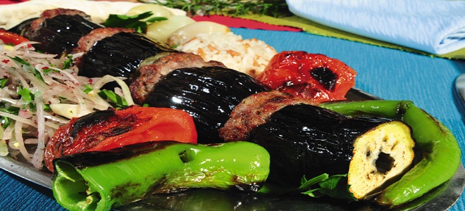 Кожен турист привозить додому рецепт закуски з баклажанами по-турецьки, бажаючи приготувати кебаб з овочами в домашніх умовах. Це не важко, оскільки блюдо складається з скибочок синенькі і м'ясних котлеток, нанизаних на шампур по черзі і запечених на вугіллі. Останні, легко замінить духовка, виставлена на 200 градусів.