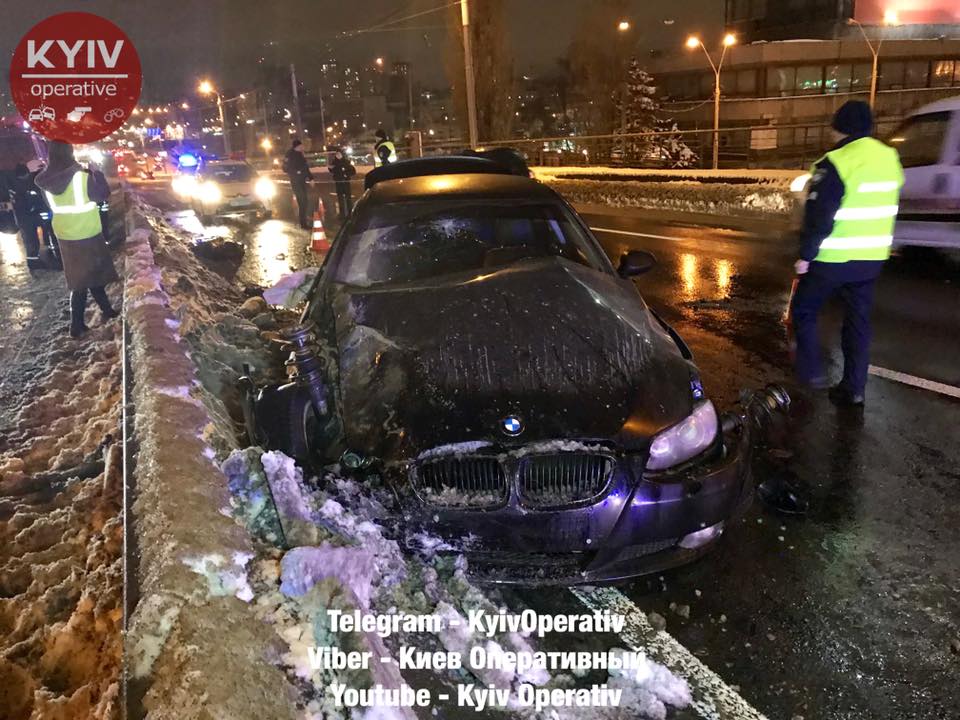Як говориться в повідомленні спільноти «Київ Оперативний» в Facebook, водій автомобіля BMW, (р.н. AI1733EA), рухаючись в напрямку Голосіївського проспекту від станції метро Дружби Народів, не впорався з керуванням і на величезній швидкості в'їхав у відбійник.