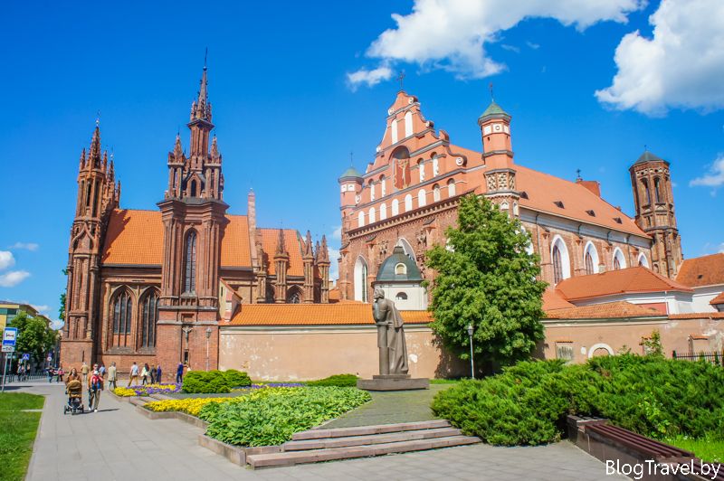А тепер підходимо до одного з найкрасивіших архітектурних ансамблів Вільнюса, створений костелами Святої Анни і Святого Франциска Ассизького. Костел Святої Анни не залишить байдужим жодного туриста, один тільки стиль - «палючий готика», старовинний червона цегла, з якого він зроблений і скеровані у вись шпилі храму чого тільки варті.