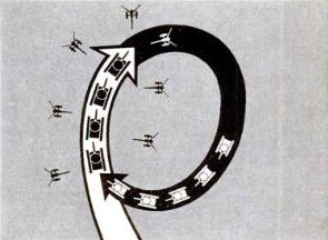ВІЙНА В АФРИЦІ привела до засадною тактиці проти британських колон (біла стрілка), котрі Роммель (чорна стрілка) заводив в мережу 88-міліметровок. Роммель робив коло і атакував їх з тилу.