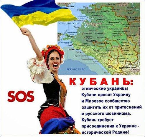 "SOS. Кубань: етнічні українці Кубані просять Україну і світову спільноту захистити їх від утисків російського шовінізму. Кубань вимагає приєднання до України - історичній батьківщині!".