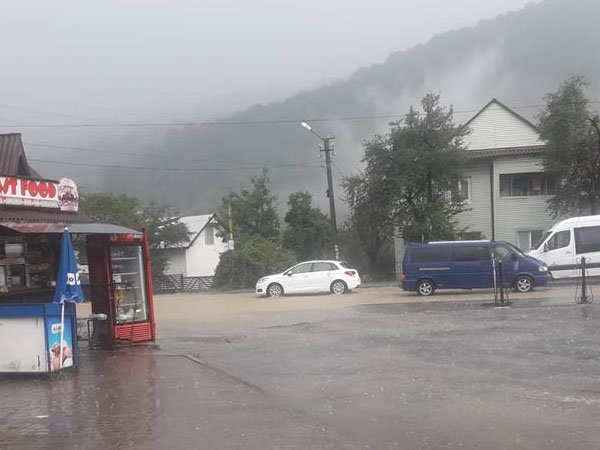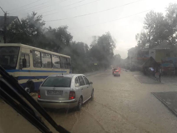 Погані погодні умови в Яремче наслідком потужних злив, які накрили регіон. Вулицями міста текли річки брудної води. На дорогах через стихійного лиха утворилися пробки.