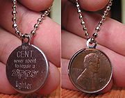 Сувенірний цент Zippo в оправі з написом «Ні цента не витрачається на ремонт запальнички Zippo»