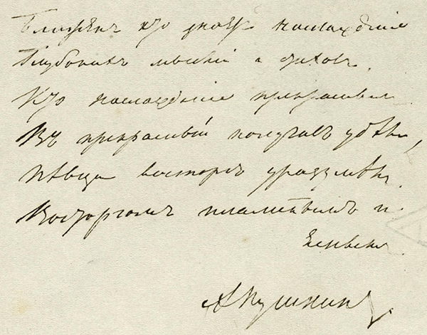 У листопаді 2007 року в Лондоні за $ 322 796 була продана оригінальний рукопис Пушкіна «Блажен хто знає насолоду»
