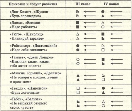 Коли людина знайомиться з іншими людьми, у нього найбільш проявляється рольове дію четвертого каналу. Це означає, що третій і четвертий канали визначають внутрішню установку людини до самовдосконалення і саморозвитку по ряду напрямків (табл. 6.7).