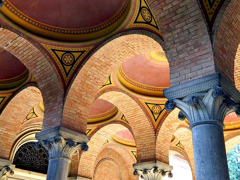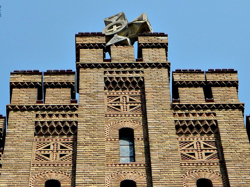 Не знаю, як вам, але мене в першу чергу вразив колір будівель - коричневий цегла. Це зараз можна побачити будівлі з подібної цегли, а в середині 19 століття це було нововведенням для даної місцевості. Можливо, Йозефа Главку відвідала ця геніальна ідея, коли він їздив по Європі і знайомився з шедеврами європейської архітектури. А можливо, домінуючий коричневий колір був обраний не випадково. Якщо походити тут довше, то виявиться суцільна символіка в деталях, в кількості вікон, колон, в орнаментах, в кольорі. Мені, наприклад, ця символіка дуже цікава. Шкода тільки, що знайшлося дуже мало відповідної літератури.