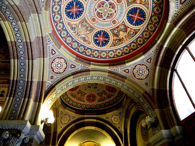 Мені ці склепіння напомнают склепіння в давньоруських палатах. І взагалі - чи помітили ви, що тут можна побачити абсолютно всі архітектурні стилі (крім модерну, звичайно). Але все це так чудово виглядає. Немає ніякого сум'яття почуттів, а навпаки - дивовижне відчуття гармонії і краси.