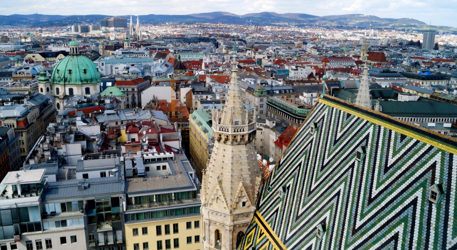 Багато путівники і побували там туристи кажуть, що це найкращий вид на Відень. Це твердження дуже сумнівне. Дертися довго і виснажливо, а в нагороду ви потрапите в тісну кімнату дзвонаря (вона ж оглядовий майданчик) з брудними (що дуже дивно для Австрії), зарешетченнимі вікнами. Види в общем-то теж не дуже. Єдине, що цікаво - зблизька роздивитися дах самого собору з майоліковою черепиці (230 000 черепичек). Загалом вам самим вирішувати, але ми туди більше не підемо))
