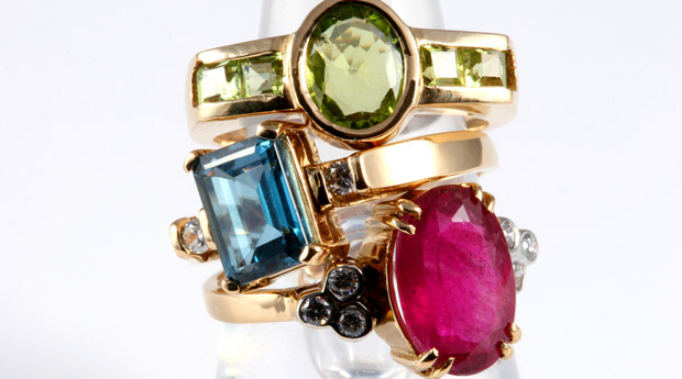 Камені першої декади Стрільця - гранат, пурпурний сибірський аметист і бірюза.