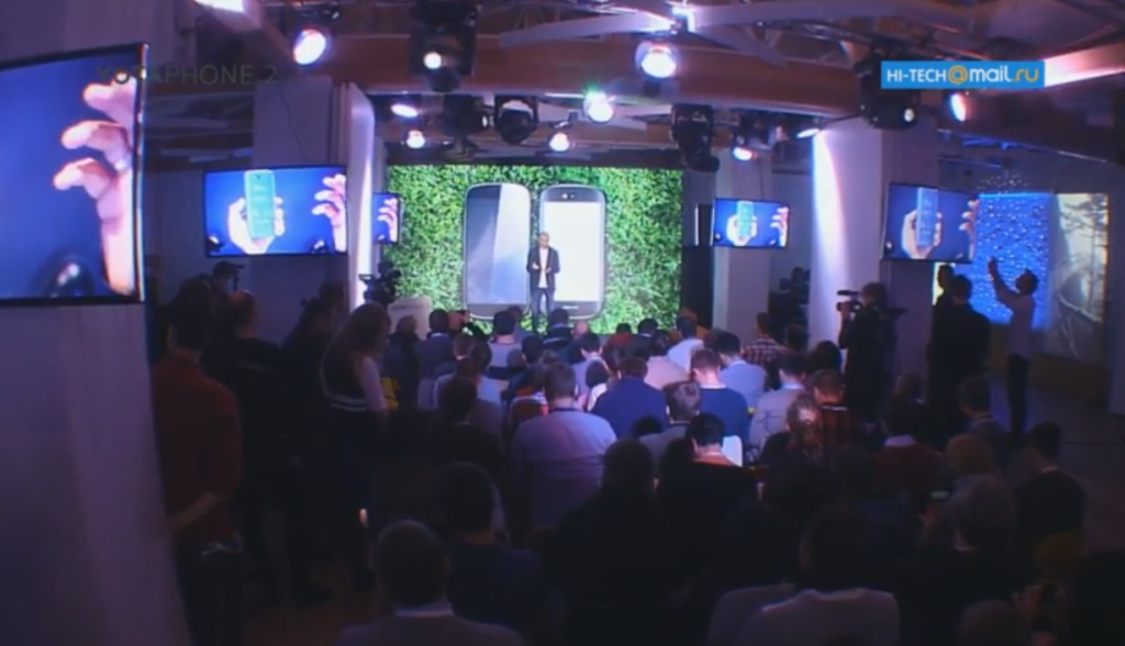 На сцену вийшов керівник компанії Владислав Мартинов та інші представники компанії, і всі разом почали демонструвати телефон, зовні схожий на звичайний Android-моноблок, але з окремими незвичайними властивостями. Перший акцент був зроблений на зручність читання (немов смартфон створений для того, щоб читати, а не користуватися зв'язком і мобільним Інтернетом). Потім, перейшли до двох інших складових, більш важливим.